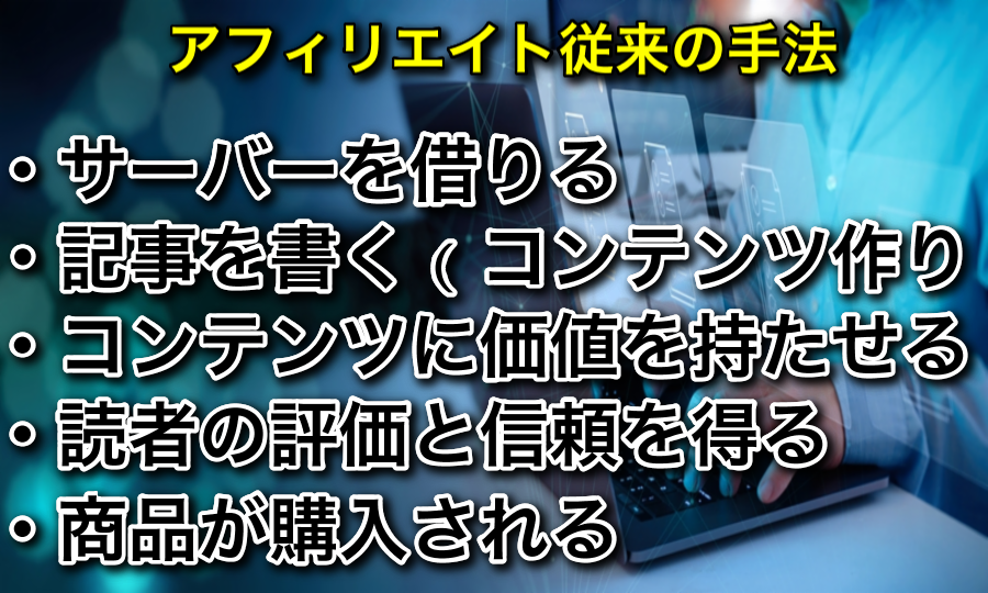 なぜなら、私もこの方法(従来のアフィリエイトビジネスモデル)